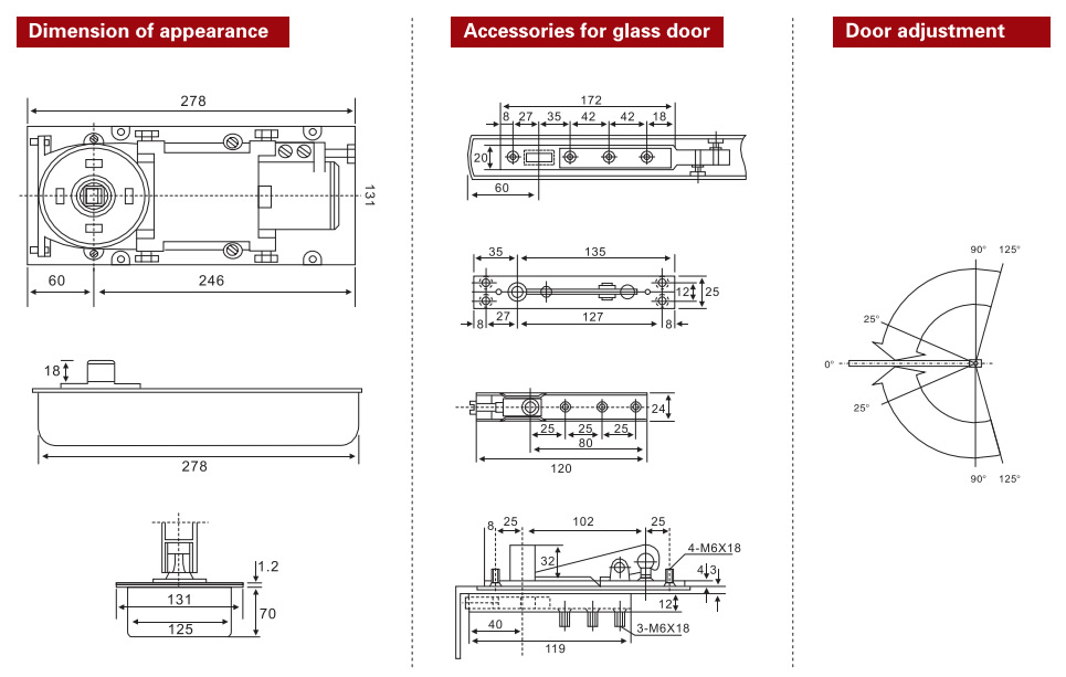 - After special design, control the bearing of the spring hinge, lighten the strength when open and close the door.